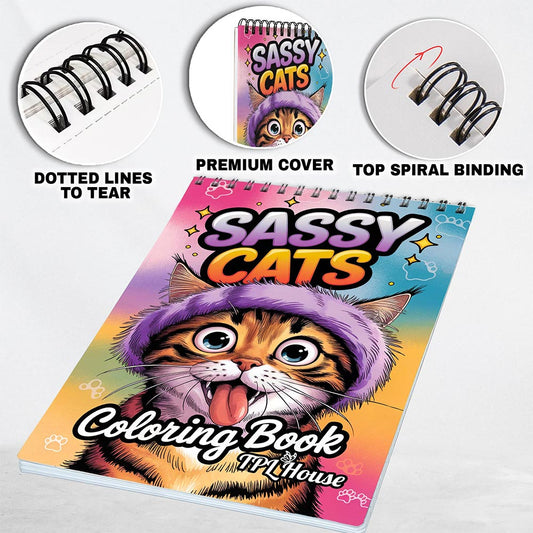 TPLHOUSE Sassy Cats Spiral Coloring Book for Adults ...