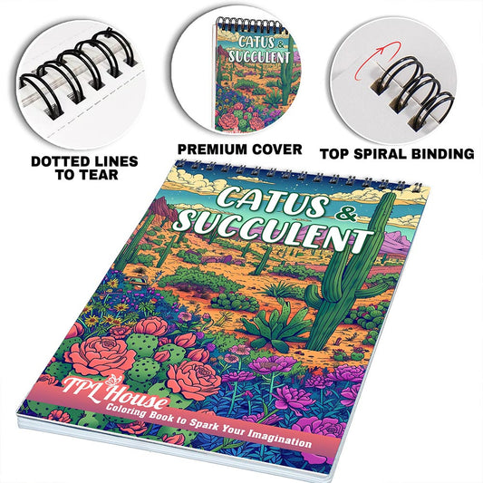 TPLHOUSE Catus and Succulent Spiral Coloring Book fo...
