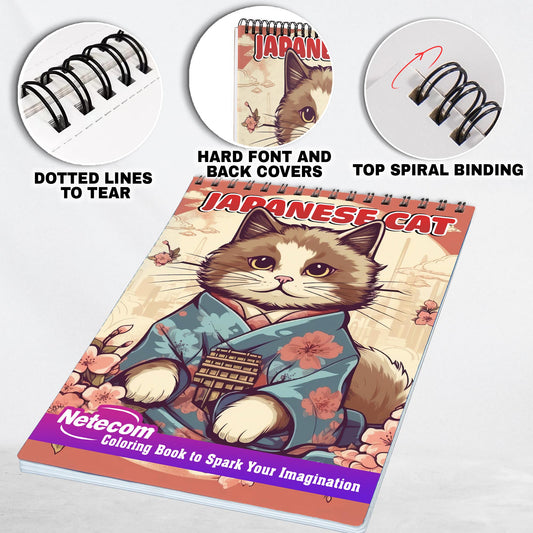 Japanese Cats Spiral Bound Coloring Book, Unleash Yo...