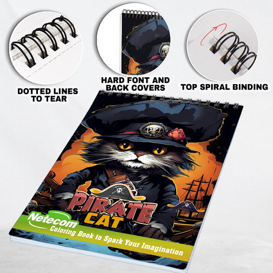 Pirate Cat Spiral Bound Coloring Book, 30 Charming P...