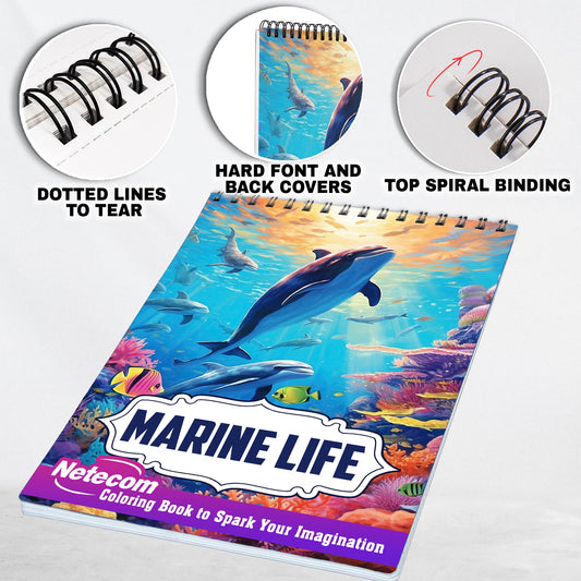 Marine Life Spiral Bound Coloring Book, Discover the...