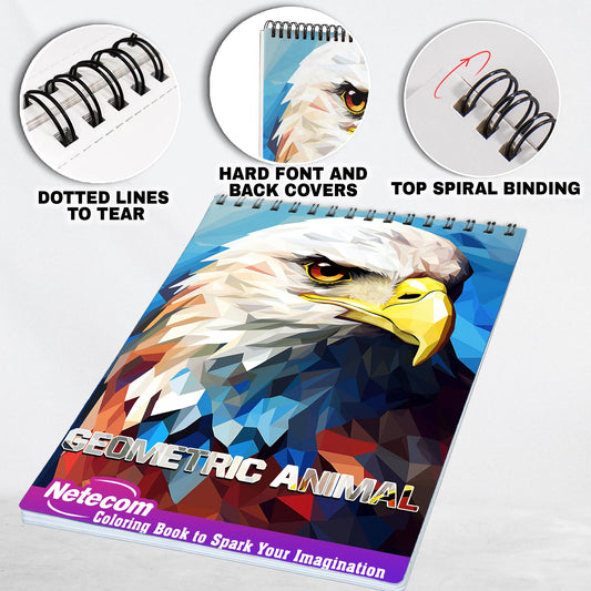 Geometric Animal Spiral Bound Coloring Book, Discove...