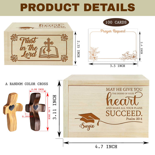 Netecom Personalized Wooden Prayer Box for Graduation with Custom Name Cross, Maple Wood Faith Keepsake with 100 Prayer Request Cards, Christian Gift for Students & New Beginnings