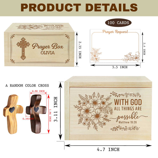 Netecom Personalized Prayer Box Gift, Custom Name Cross and 100 Prayer Request Cards, Christian Faith Keepsake