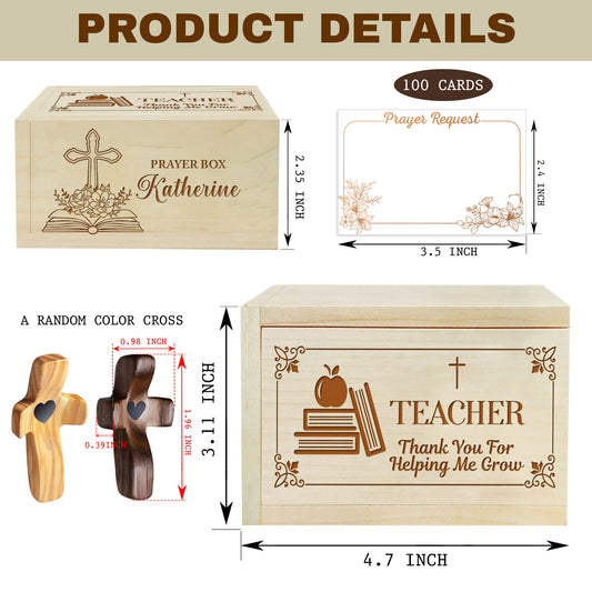 Netecom Personalized Teacher Prayer Box with Custom Name on Box & Cross, Christian Appreciation Gift with 100 Prayer Request Cards, Faith Gift for Teachers