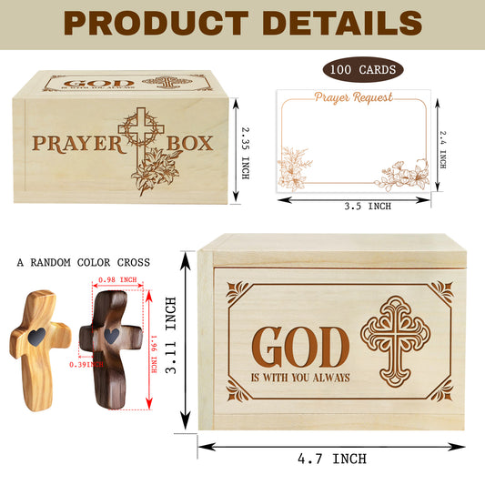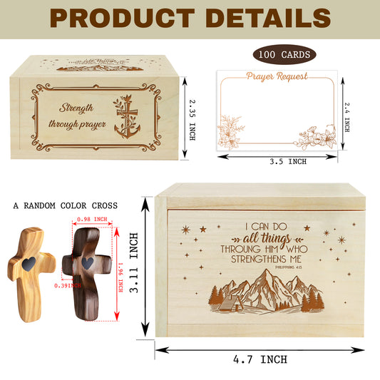 Netecom Personalized Wooden Prayer Box with Scripture Design, Maple Wood Faith Keepsake with 100 Prayer Request Cards & Handheld Cross, Christian Gift for Daily Prayer
