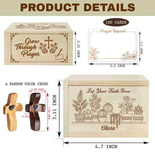 Netecom Personalized Wooden Prayer Box with Custom Name & Handheld Cross, 100 Prayer Request Cards – Grow Through Prayer Christian Faith Gift