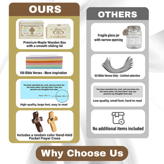 Netecom Personalized Christian Love Bible Verse Box for Couples – Wooden Scripture Box with 150 Color-Coded Verses & Custom Name Prayer Cross