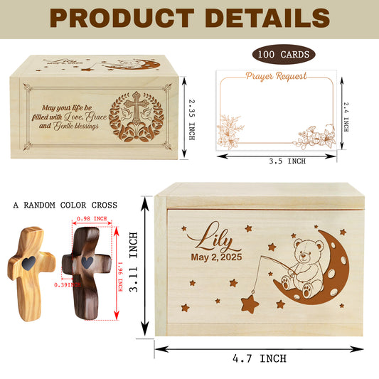 Netecom Personalized Baby Wooden Prayer Box with 100 Prayer Request Cards, Custom Name & Year Keepsake, Wooden Cross, Christian Faith Gift