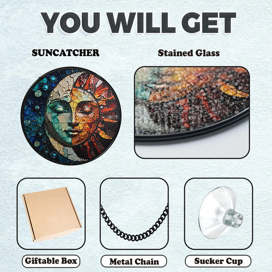 Netecom Celestial Sun and Moon Stained Glass Suncatc...