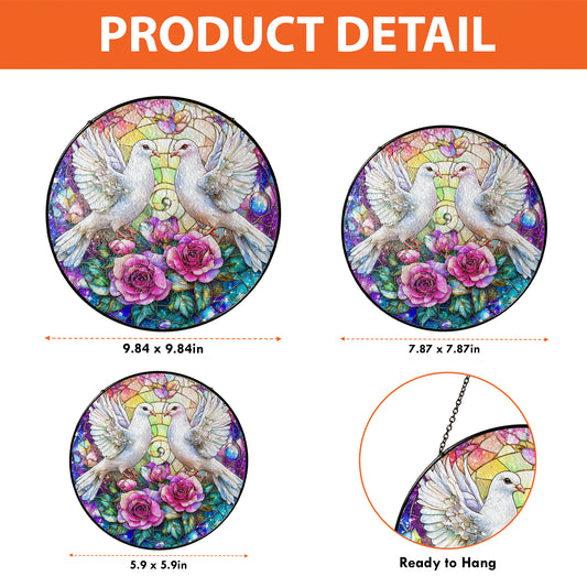 Netecom White Doves Stained Glass Suncatcher, Romant...