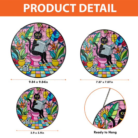 Netecom Black Cat on Toilet Stained Glass Suncatcher...