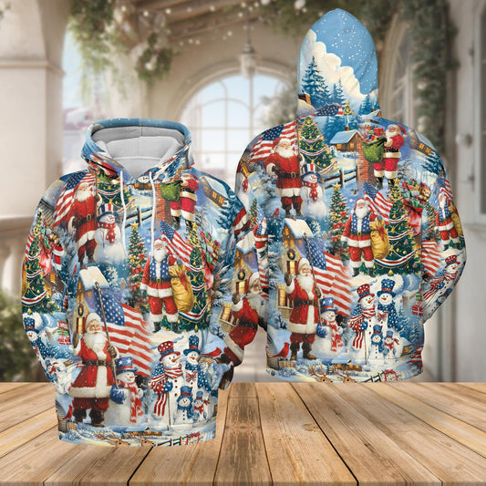 Netecom Santa Claus American Flag Christmas 3D Hoodi...