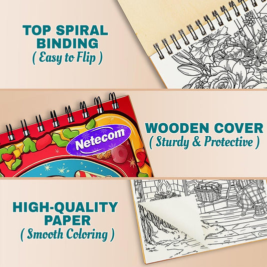 Netecom Relaxing Christmas Coloring Book Spiral Boun...