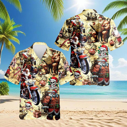 Netecom Pirate Santa Claus Hawaiian Shirt for Men, F...