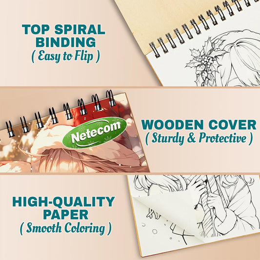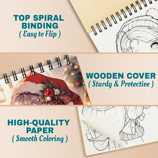 Netecom Kawaii Girls Christmas Coloring Book Spiral ...