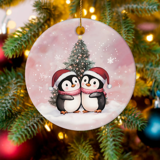 Netecom Cute Penguin Couple Pink Ornament, Ceramic R...