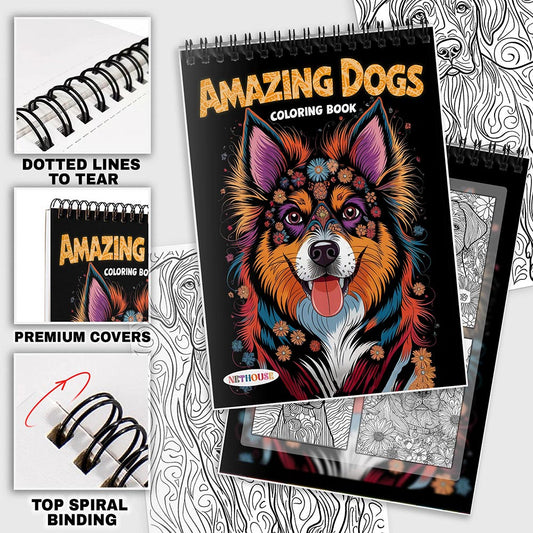 NETHOUSE Amazing Dogs Spiral Coloring Book for Adult...