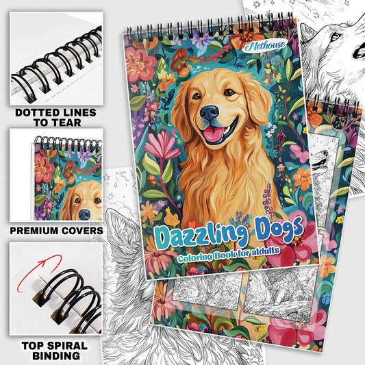 NETHOUSE Dazzling Dogs Spiral Coloring Book for Adul...