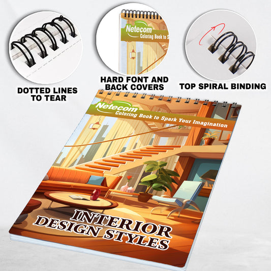 Interior Design Styles Spiral Bound Coloring Book, D...