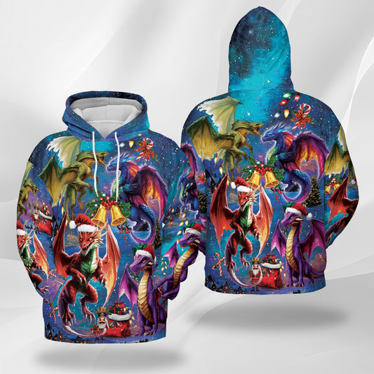 Netecom Christmas Dragons 3D Hoodie with Front Pocke...