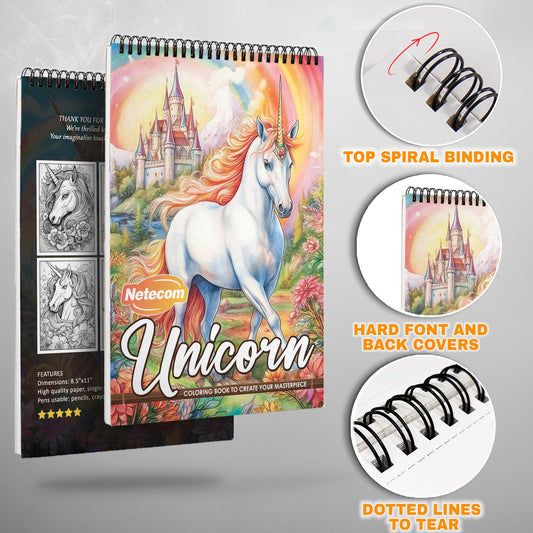 Unicorn Spiral Bound Coloring Book, Magical Unicorns...