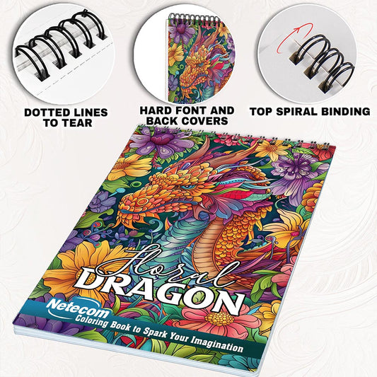 Netecom Floral Dragon Coloring Book for Adults, Spir...