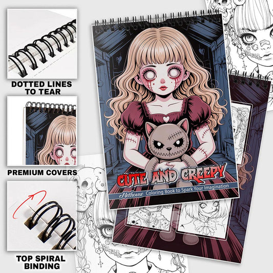 Netecom Spooky Kawaii Coloring Book Spiral Bound for...
