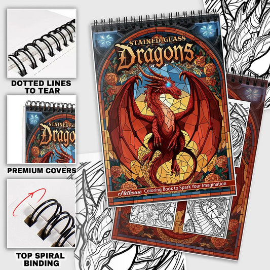 NETHOUSE Stained Glass Dragons Coloring Book For Adu...