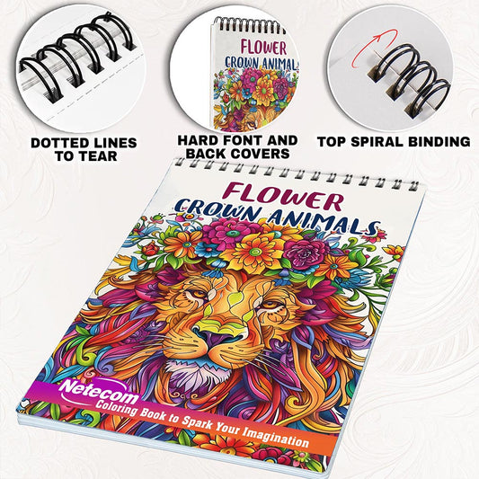 Netecom Flower Crown Animals Coloring Book for Adult...