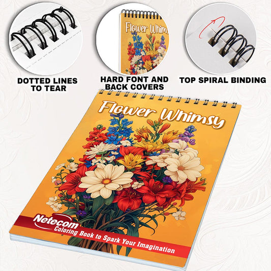 Netecom Flower Whimsy Coloring Book for Adults, Spir...