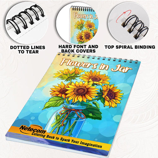 Netecom Flowers in Jar Coloring Book for Adults, Spi...