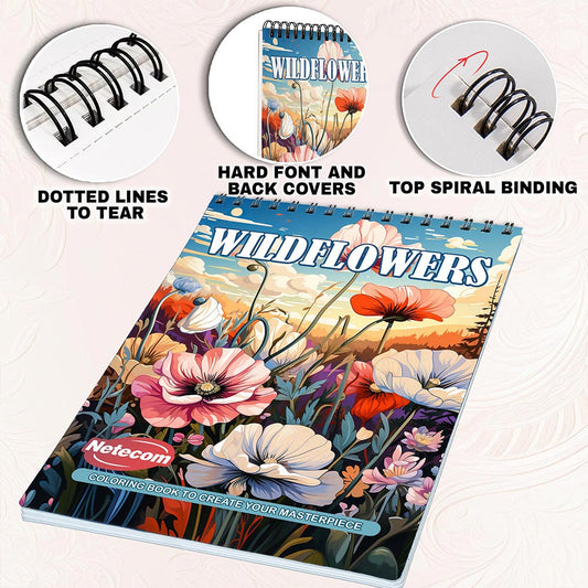 Netecom Wildflowers Coloring Book for Adults, Spiral...