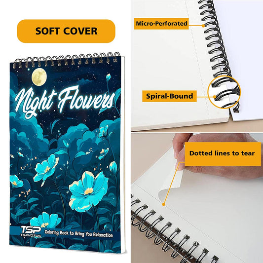 TSPVOTUS Night Flowers Coloring Book for Adult, Spir...