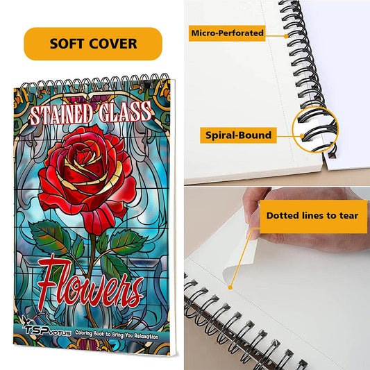 TSPVOTUS Stained Glass Flowers Coloring Book for Adu...