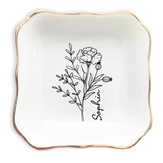 Netecom Personalized Birth Month Flower Trinket Dish...