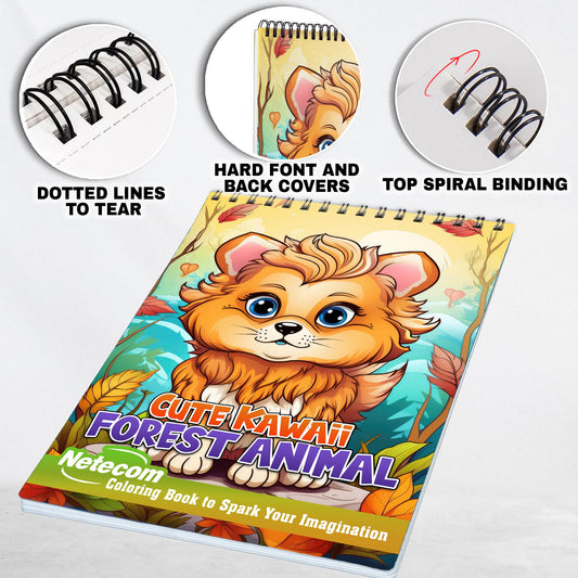 Cute Kawaii Forest Animal Spiral Bound Coloring Book...