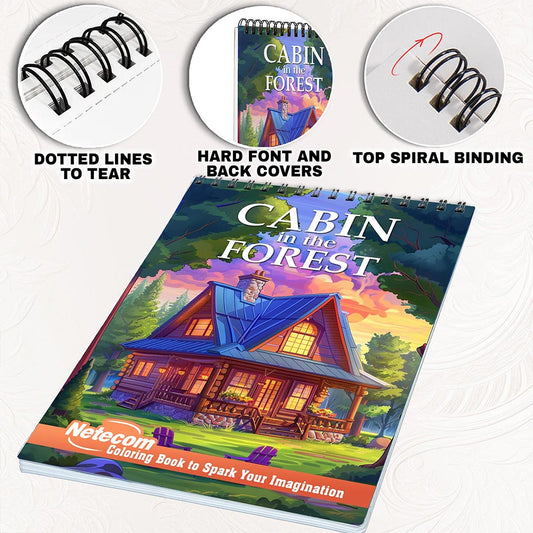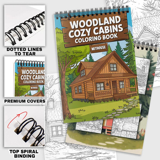 NETHOUSE Woodland Cozy Cabins Spiral Coloring Book f...