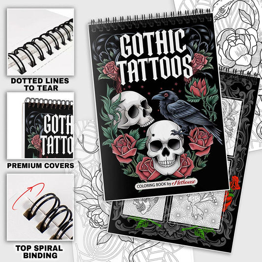 NETHOUSE Gothic Tattoos Spiral Coloring Book for Adu...