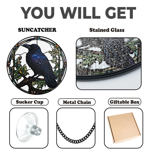Netecom Raven Stained Glass Suncatcher – Gothic Crow...