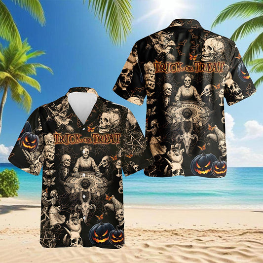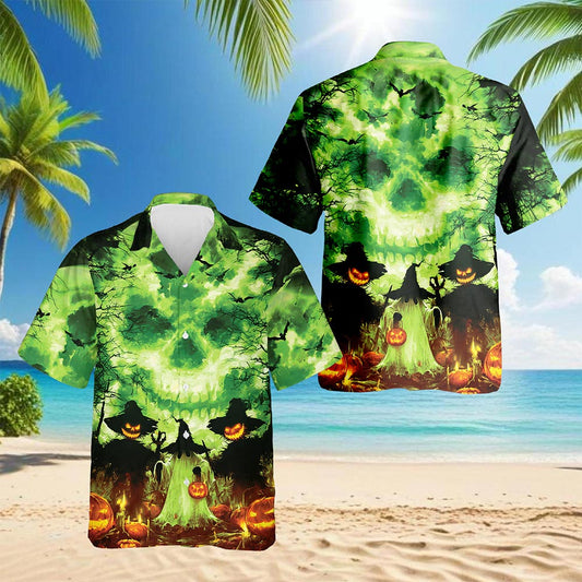 Netecom Vintage Skull Halloween Hawaiian Shirt for M...