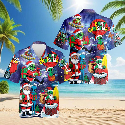 Netecom Alien Santa Claus Christmas Hawaiian Shirt f...