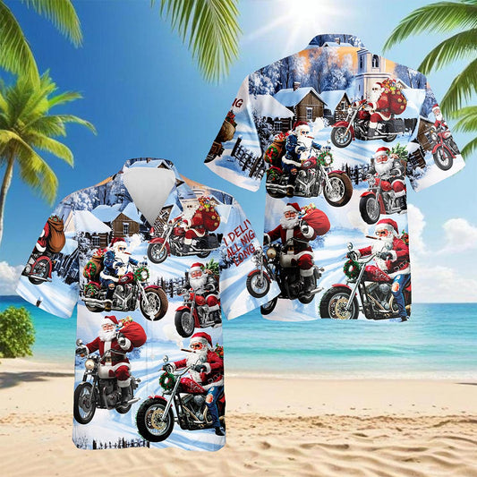Netecom Santa Claus Motorcycle Christmas Hawaiian Sh...