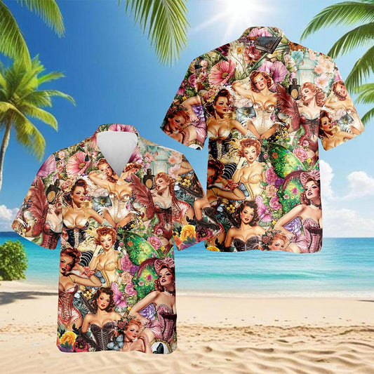 Netecom Vintage Dancer Pinup Carnival Hawaiian Shirt...