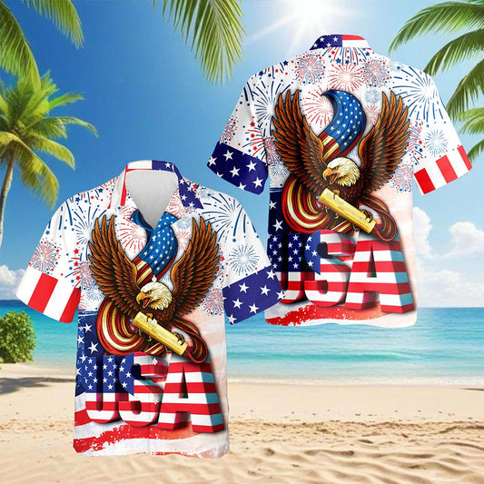 Netecom Eagle 2nd Amendment America Flag Hawaiian Sh...