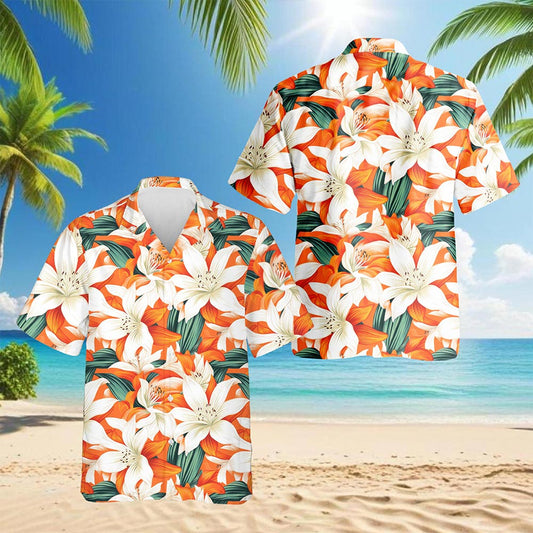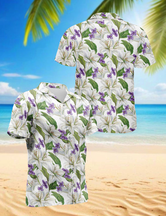Netecom White Lilies With Violets Hawaiian Shirt for...