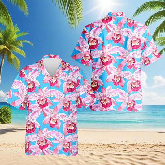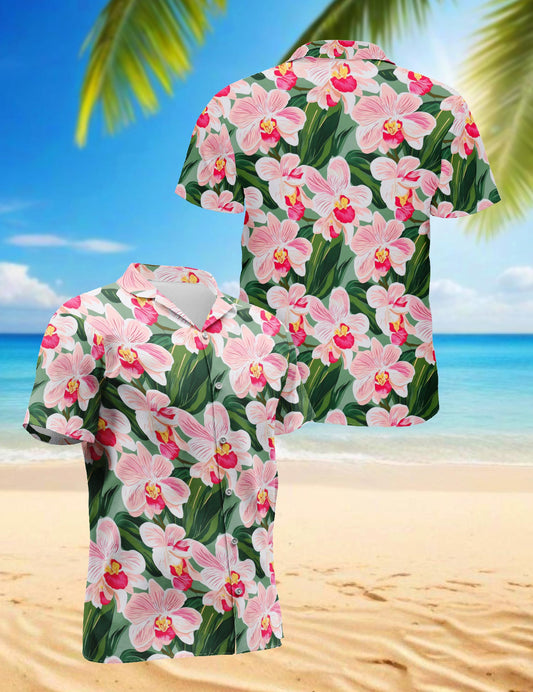 Netecom Pink Orchid Hawaiian Shirt for Men, Floral L...