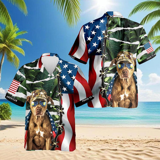 Netecom Retro Pitbull 4th of July Hawaiian Shirt for...
