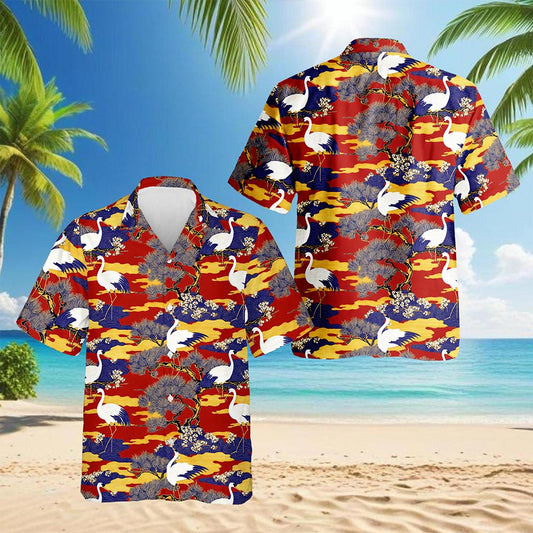 Netecom Sakura Redheaded Crane Hawaiian Shirt for Me...