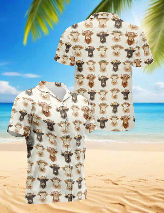 Netecom Watercolor Highland Cows Hawaiian Shirt for ...